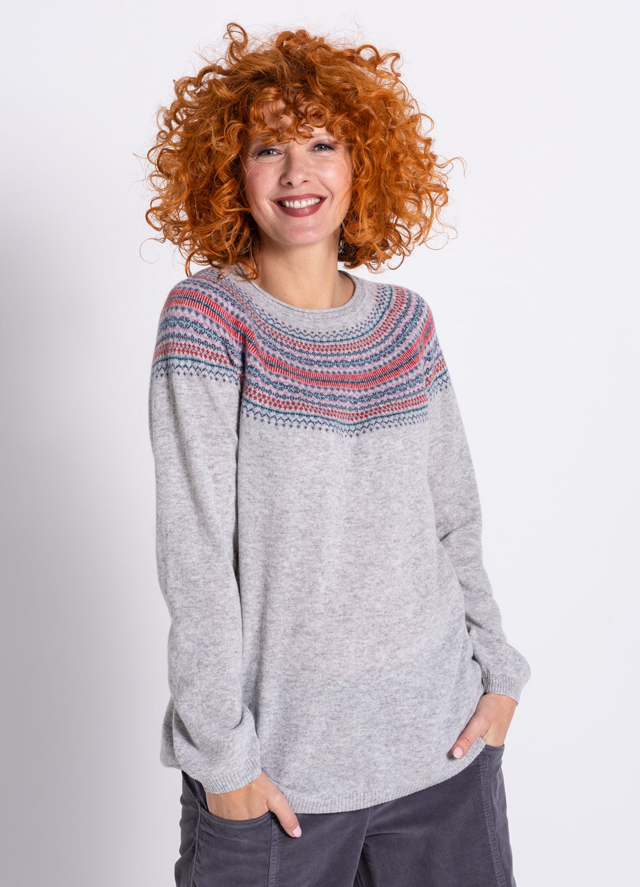 Der HEIDEKÖNIGIN Pullover TYRA besticht durch seinen besonders dekorativen Look mit einer eleganten Borte an der Schulter. Dieses Detail verleiht dem Pullover eine individuelle Note und sorgt für einen stilvollen Auftritt. Perfekt, um Ihrem Outfit einen charmanten, femininen Akzent zu verleihen. Ein Must-have für alle, die gemütlichen Komfort mit einem Hauch Raffinesse verbinden möchten.