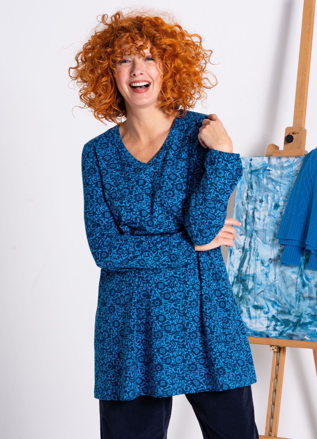 Die HEIDEKÖNIGIN Tunika LAJA besticht durch ihre schmeichelhafte A-Linie, die jede Figur elegant umspielt. Hochwertige Materialien sorgen für angenehmen Tragekomfort, während das zeitlose Design vielseitig kombinierbar ist. Perfekt für stilbewusste Frauen, die Wert auf Komfort und modische Präsenz legen. Entdecken Sie mit LAJA eine Tunika, die Sie mühelos vom Alltag bis zum besonderen Anlass begleitet.