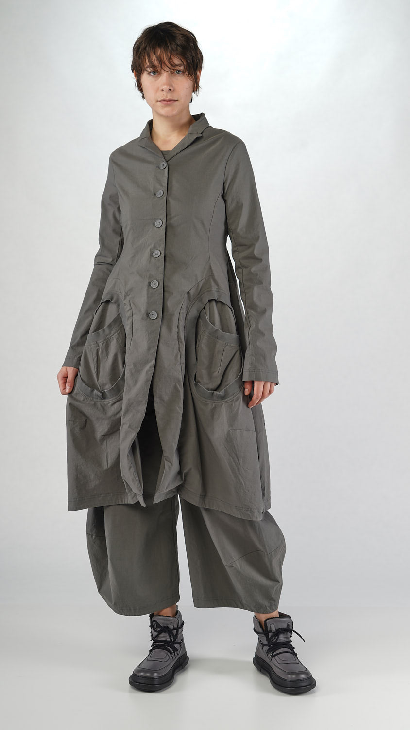 Dieser außergewöhnliche RUNDHOLZ Black Label Mantel ist ein Statement-Piece für alle, die sich bewusst von der Masse abheben möchten. Mit seiner markanten Silhouette und durchdachten Details verkörpert er moderne Eleganz gepaart mit künstlerischem Flair. Der hochwertige Stoff fällt wunderbar und schmeichelt der Figur, während das zeitlose Design über Saisons hinweg tragbar bleibt. Perfekt für alle, die Mode als Ausdrucksform verstehen und Wert auf Qualität und Individualität legen.