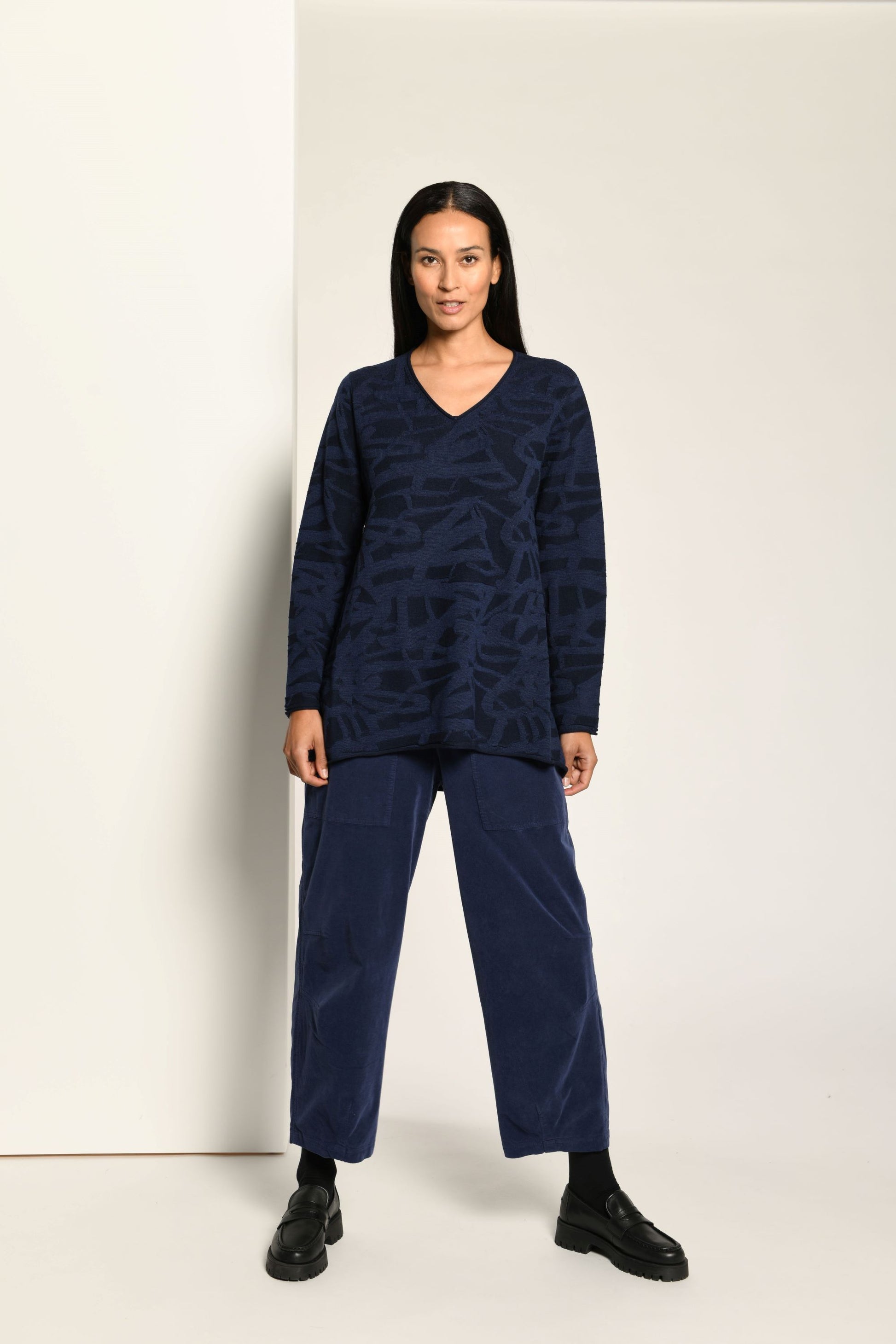 Dieser klassische Pullover in A-Form mit V-Ausschnitt überzeugt durch zeitloses Design und harmoniert perfekt mit allen Vetono Hosen. Sein eleganter Schnitt sorgt für eine schmeichelhafte Silhouette und macht ihn zum vielseitigen Begleiter für stilbewusste Looks. Ideal für jeden Anlass, verbindet er Komfort mit zeitloser Eleganz.